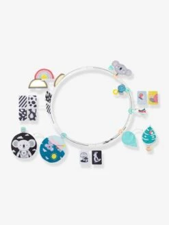 - Contient: 1 miroir arc-en-ciel, 4 cartes en tissu contrasté, 1 hochet anneau de dentition, 1 hochet billes et rubans, 2 cartes colorées, 1 koala bruissant et 1 feuille texturée.