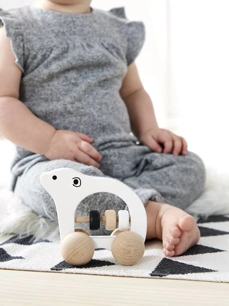 Inspiré du design scandinave par ses couleurs naturelles bois, noir et blanc, ce hochet en bois représentant un petit ourson polaire éveillera les sens de votre bébé ! Muni d’un mini boulier et de roulettes, l’enfant peut ainsi s’amuser à le faire rouler, le secouer, le faire tourner… Ce hochet en bois est également une jolie idée pour un cadeau de naissance !