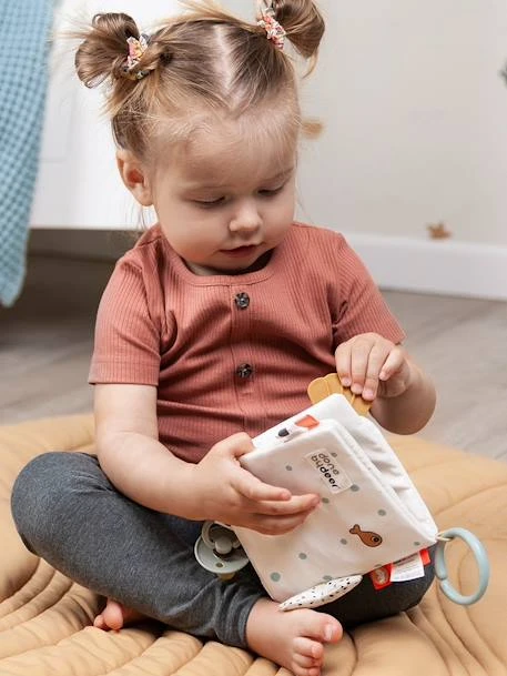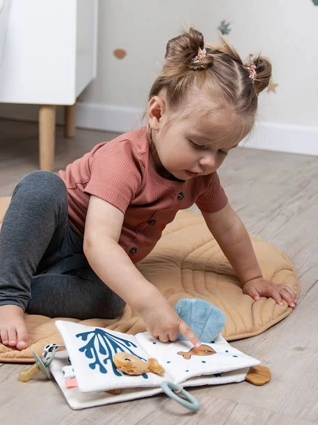 Le Livre d’Éveil Sea Friends plonge bébé dans un univers sous-marin plein d’activités. Des textures, des reliefs, des couleurs mais aussi un anneau de dentition et des amis ludiques cachés sous le coquillage vont stimuler les sens des tout-petits. Muni d’une attache velcro, ce livre pourra servir d’attache-tétine, le lien pourra également servir à attacher le livre à un parc ou à la poussette afin de divertir bébé en toutes circonstances.