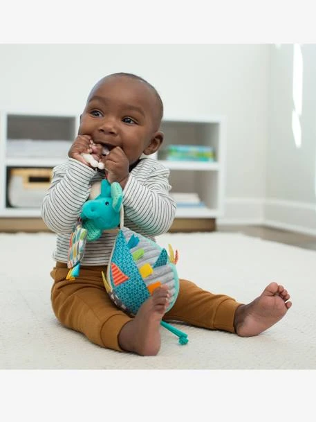 Etudiée pour éveiller ses sens, elle est composée de tissus de différentes textures (satin, tricot…) et de rubans et fanions en volume pour attiser leur curiosité. Pour stimuler l’ouïe, la montgolfière d’activités Infantino contient du papier crissant, des grelots et de petites billes qui font du bruit lorsqu’on les secoue. Son petit éléphant suspendu amusera votre enfant ! Il retient au bout de ses pattes un miroir et un anneau de dentition bien utile en période de poussée dentaire.