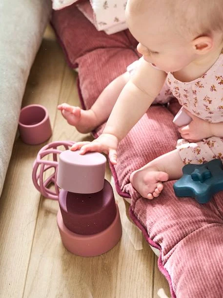 5 pièces en silicone à empiler pour former une pyramide aux 5 nuances de roses ! Tendance et idéal pour les enfants, le silicone est doux, se mâchouille sans problème et peut aussi être utilisé dans le bain.